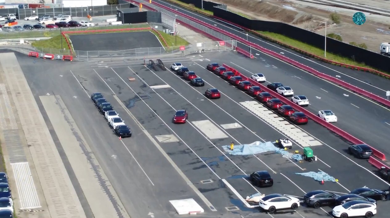 UPDATE 11:43pm PT: Fremont is already producing Ultra Red. 14 Model X SUVs spotted at the test track yesterday in the new colour in this drone flyover.