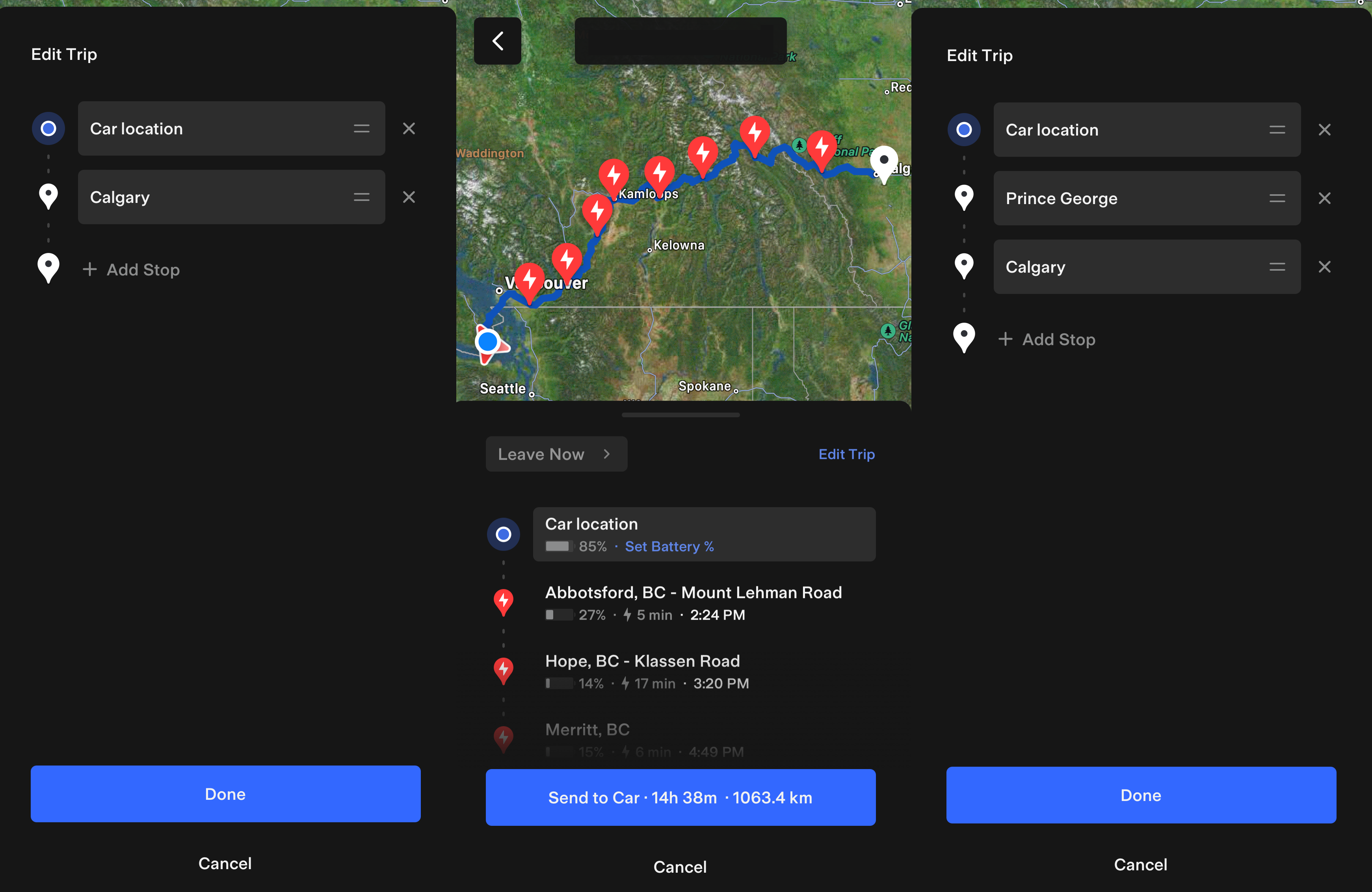 Just like the Trip Planner in the car, you can now use the mobile app to plan your road trip and add stops along the way. You can also rearrange the Waypoints if you accidentally add them in the wrong order, or delete them if you change your mind. Once you have your trip planned out, you can seamlessly send the route and plan to your car.