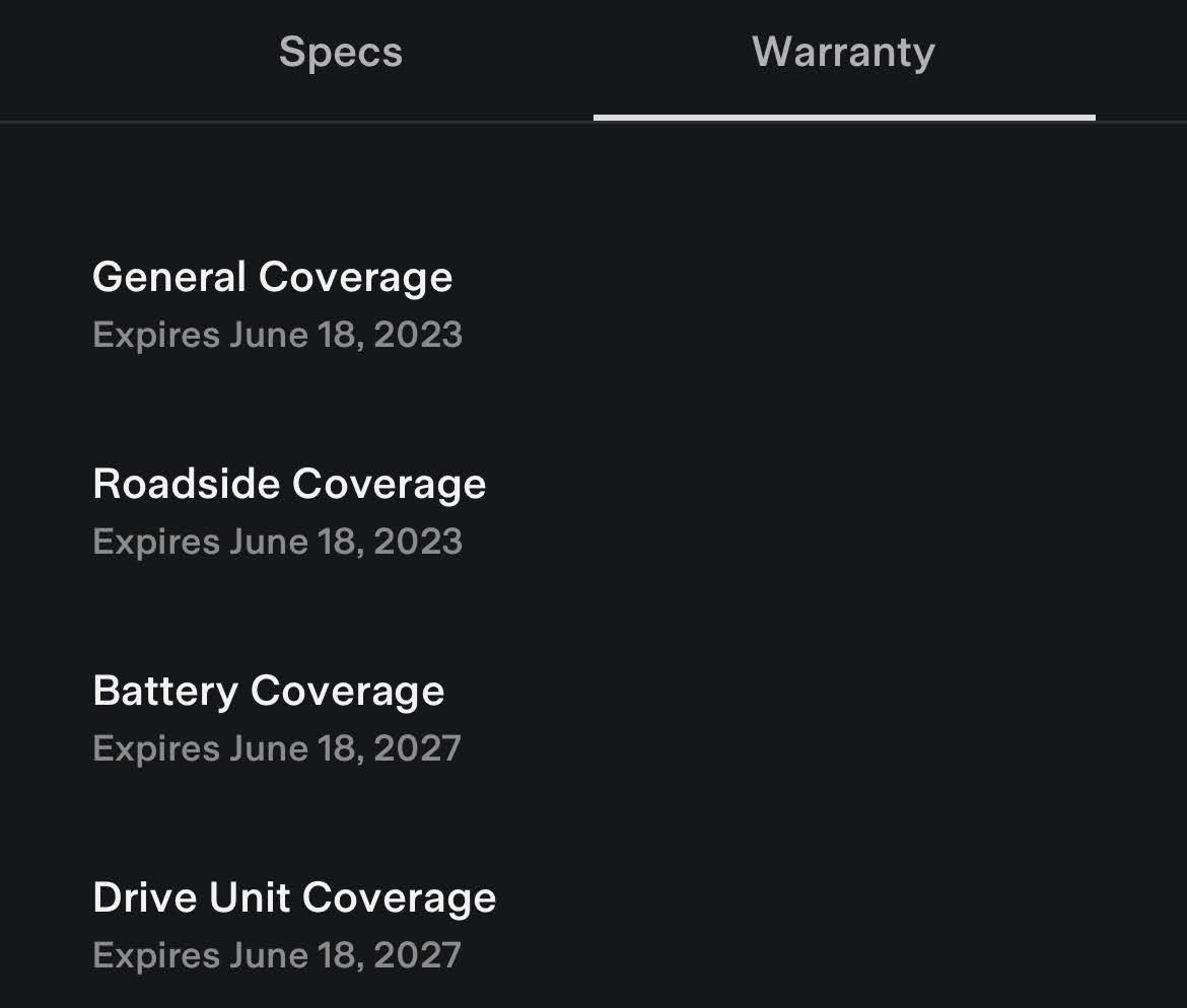 Now it is easily accessible through the app, showing the expiry dates of your General, Roadside, Battery, and Drive Unit coverages.