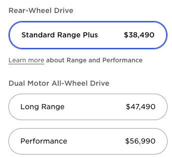The Model 3 was also impacted. The Standard Range Plus (SR+) and LR variants increased by $500 each, and the Performance increased by $1,000.