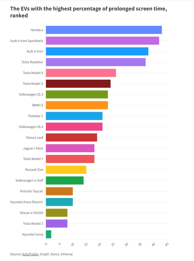 In addition to the number of screen appearances, the Auto Trader study also calculated the amount of time each electric vehicle was on screen. Here, Honda E was in the lead. Tesla Roadster was in 4th place, while Model X, Model S, Model Y, and Model 3 were in 5th, 6th, 13th, and 19th places, respectively.
