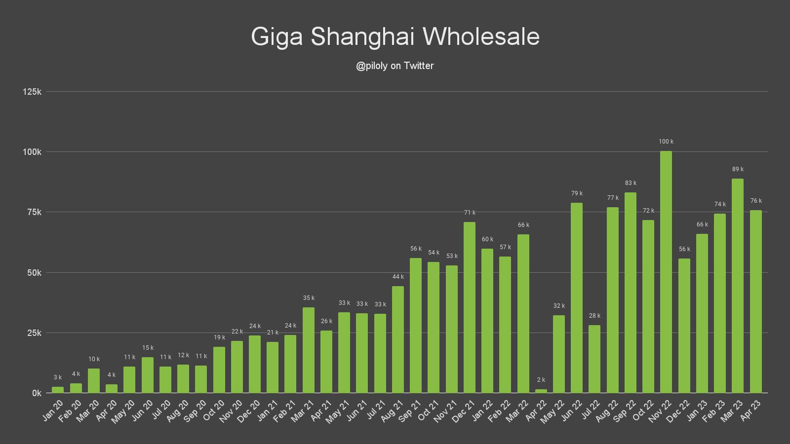 While April’s wholesale figure is a 15% drop from the 88,869 vehicles that were sold in the previous month, it is still a positive sign for Tesla as it was their second best month in 2023, and when looking at the factory’s historical figures, it was the best first month of a quarter in their history. If this pace continues Tesla could easily surpass the 201,000 sales in the fourth quarter of last year and set a new quarterly sales record at Giga Shanghai.