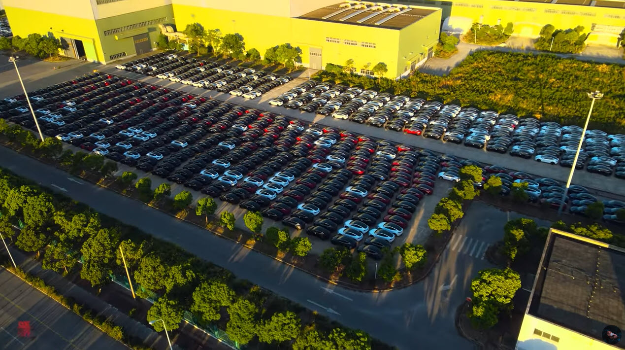 One week later and all those cars have been shipped and replaced with an even larger batch. On Friday drone operator Wu Wa captured an even larger batch of Model 3 and Model Y.