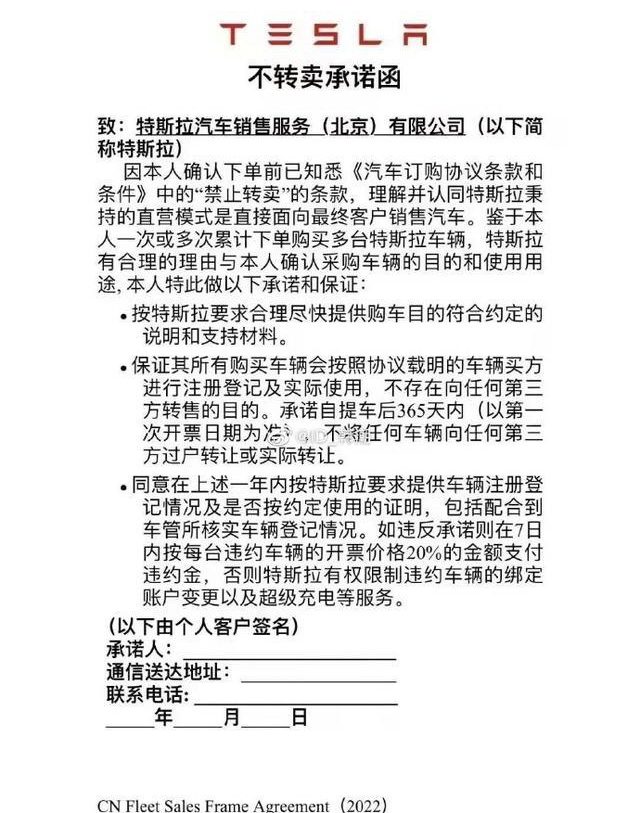 According to a copy of the document shared by Weibo blogger @ID_韩潮 and reported by CnEVPost, the customer also agrees to pay fine in the amount of 20% of the original price of each vehicle if the contract is broken.