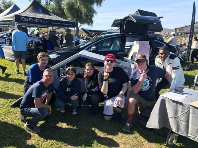The brainchild of the project was Technology Instructor Tom Burick. The Cybertruck project was supposed to be a semester-long project for his class. However, after an invite to debut the model at the Concours car event by the Tesla Driver’s Club of Scottsdale, Burick asked his students if they were up for the challenge, to which they enthusiastically replied “we’re up for it,” which then became the truck’s vanity plate.