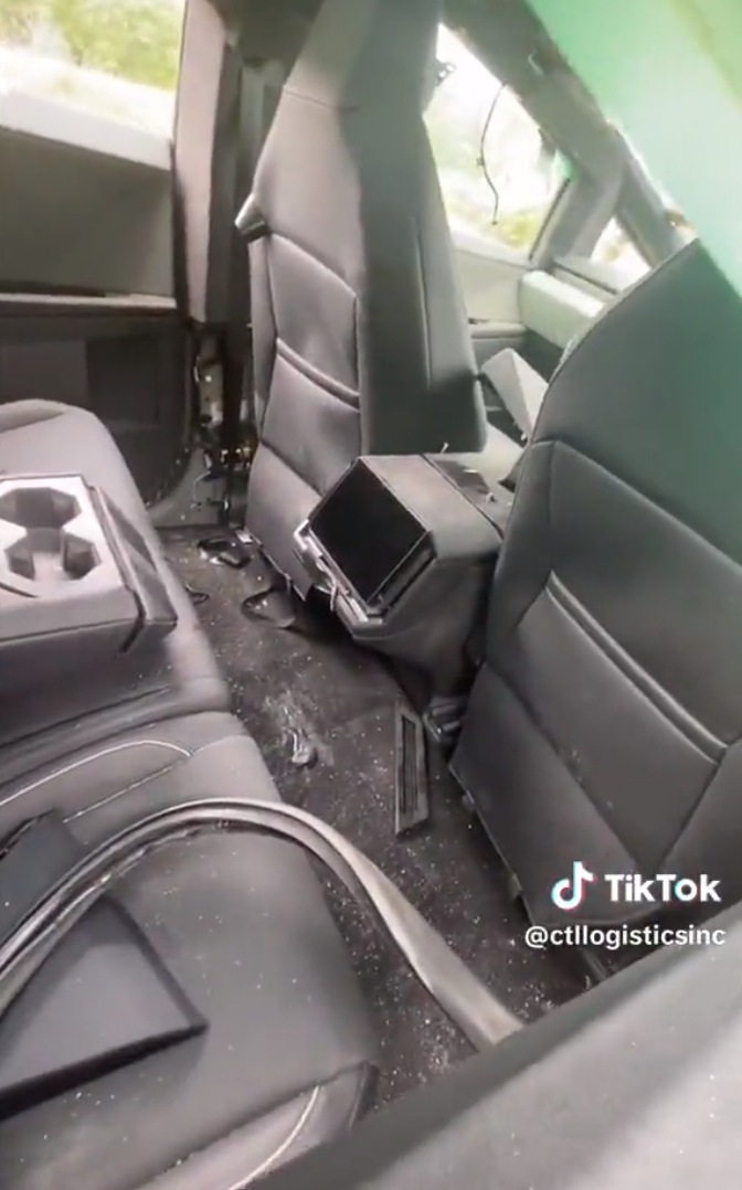 While we assume the Cybertruck will have a similarly low number, in the unlikely event it does rollover the driver and occupants look like they will be kept very safe. As you can see in the video above and images below, the main cabin of the Cybertruck is largely in tact with no major structural failures. It looks like the bed of the truck is still in remarkably good shape as well, but it is littered with assorted trim pieces, like those around the wheels, that fell off during the test.