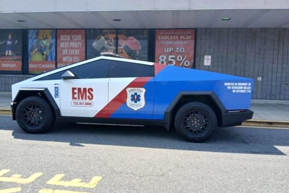 A Tesla Cybertruck was spotted in an EMS vehicle wrap in New Jersey. This marks the first time the steel beast has been seen outfitted for emergency services. A Reddit user shared a photo of the find two days ago. The photo shows the Cybertruck in a red-white-blue wrap, with a siren on the roof, and text identifying it as an emergency vehicle. It was also possible to determine that it belonged to Hatzulas Nefashos.