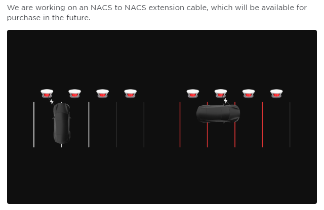 Not much information is provided, but one of the FAQs on the ‘Supercharging Other EVs’ page, it says, “We are working on an NACS to NACS extension cable, which will be available for purchase in the future.”