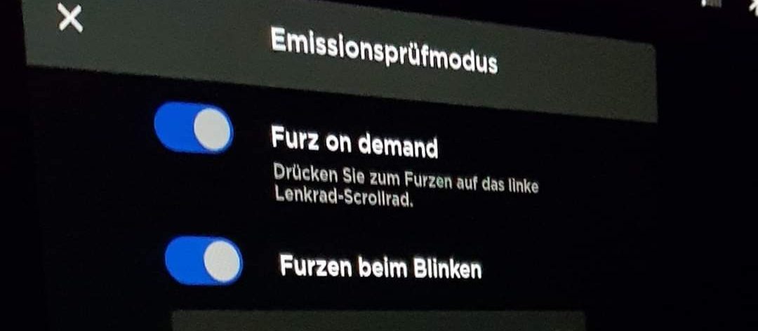 Everyone is very familiar with Tesla’s fart mode, but probably less so than by its official name – Emissions Testing Mode. In Germany, it goes by the same name, ‘Emissionsprüfmodus‘, or at least it used to.