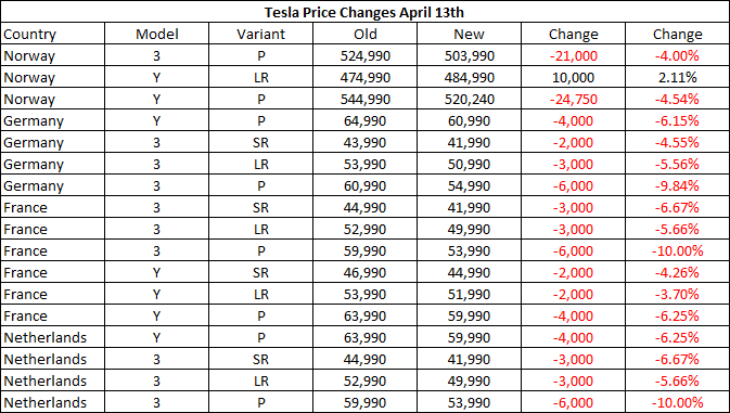 The price adjustments weren’t limited to Germany, with others being reported in Norway, France, the Netherlands, according to price tracking from Twitter user @funwithnumberz. The lone standout is the Model Y Long Range in Norway, which happens to be the most popular EV in the country, which actually saw a small 2% price increase.
