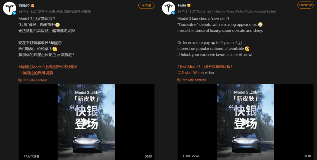 Now Tesla has expanded it further, offering Quicksilver as an option on the entire Model 3 lineup out of Giga Shanghai, as announced by Tesla through their Weibo account in China.