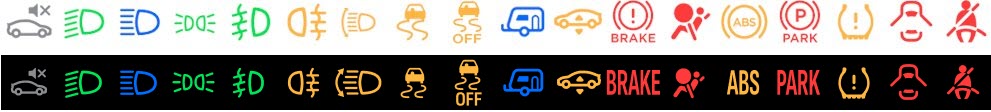 The specific icons in question are the PARK, BRAKE, and ABS warning indicators that appear on the main display, all of which have been updated to be “not less than 3.2mm (1/8 inch)” in size.