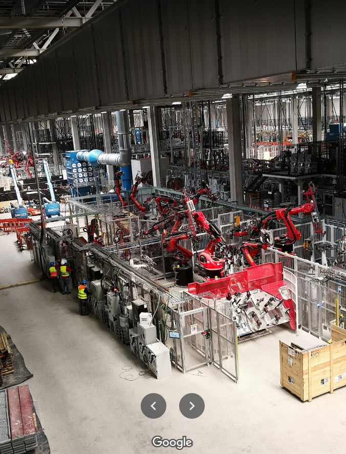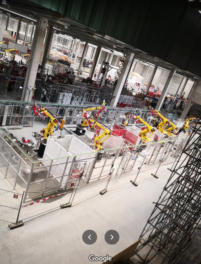 New images from inside the factory in Germany reveal a large number of robots and machinery have also been installed.