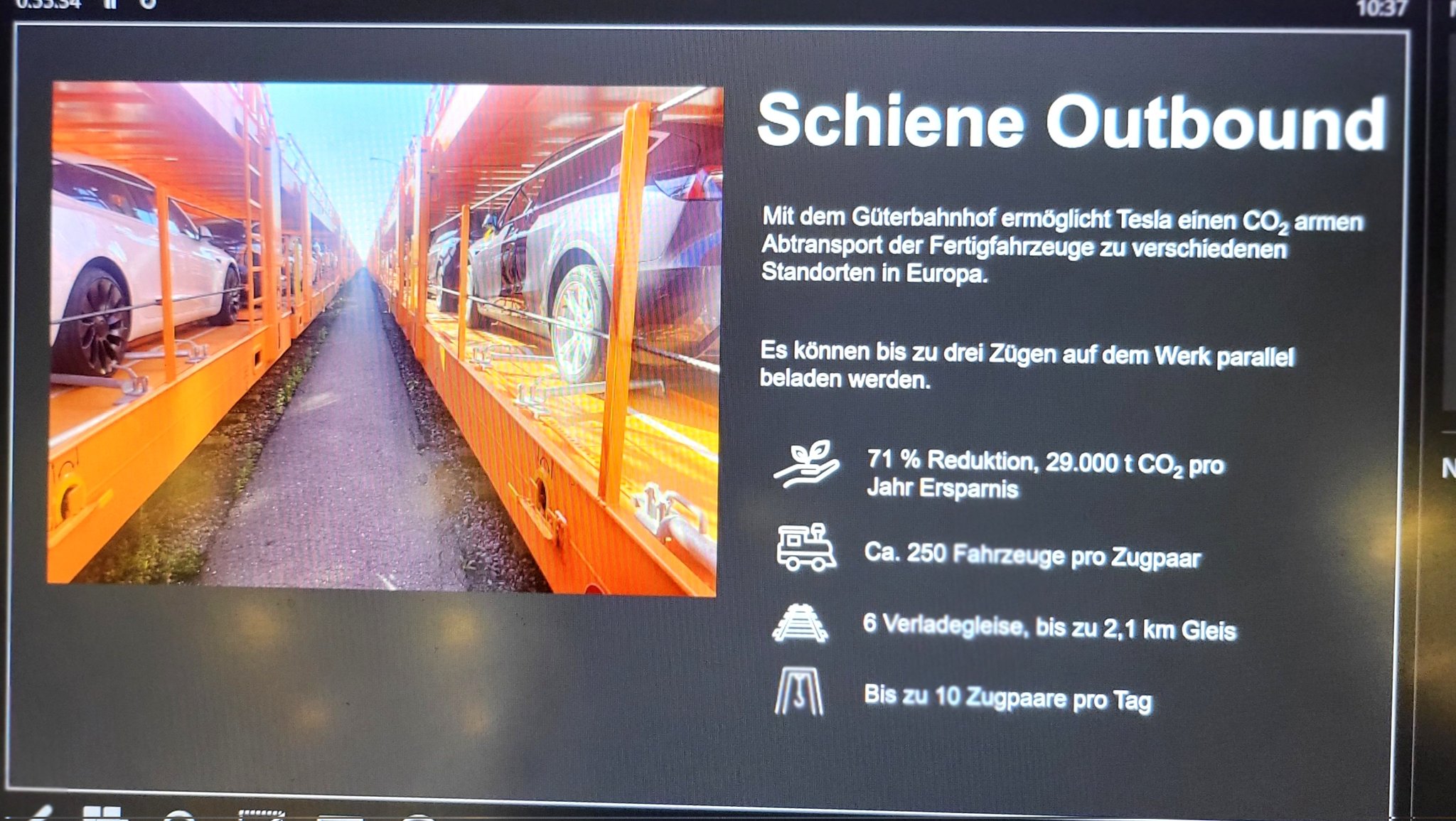 According to information presented on the day and shared by @Gf4Tesla, Tesla showed off a rail logistics plan that would significantly reduce the amount of CO2 emitted when delivering new cars to customers, and when bringing in parts and supplies to the factory.
