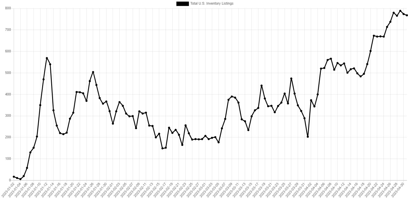 The price increases come at a time when Tesla is sitting on historically high volumes of Model 3 vehicles. According to a tracker of existing inventory levels in the US, Tesla currently has close to 800 Model 3 sedans sitting in existing inventory, up from about only 200 at the same time last month. The story is quite different for the Model Y, of which there are around 200 currently available for immediate purchase through Tesla’s website, in line with volumes since the massive price cuts in January.