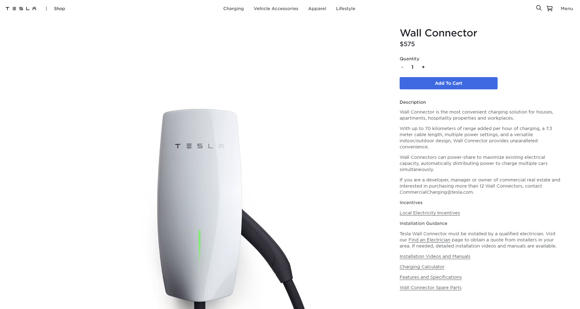 You can purchase the Wall Connector at the links below.