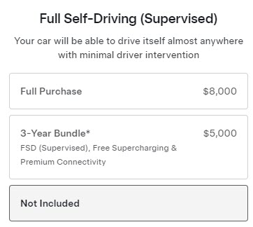 Now Tesla is trying a new approach to sell FSD. Model S/X buyers in the US can now add a US$5,000 bundle to their order, which gives them FSD, free Supercharging, and free Premium Connectivity, but only for a period of three years.