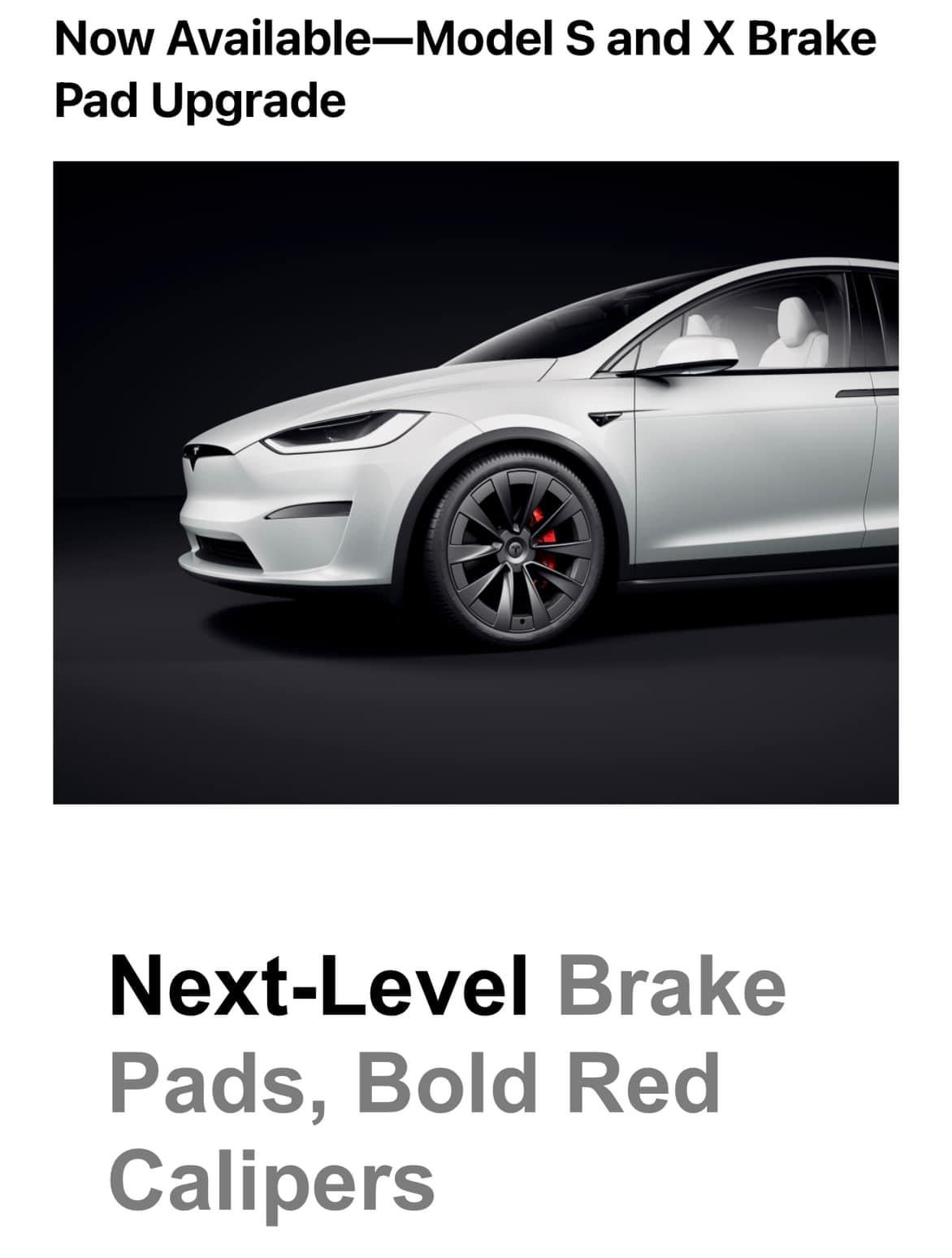 Tesla announced these upgrades through an email to existing owners, sharing images of the new pads and calipers.