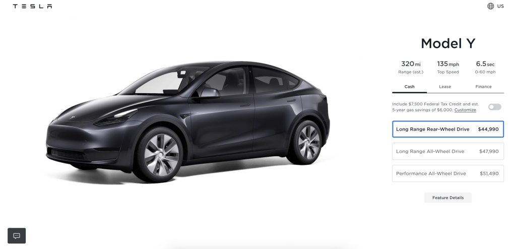 On Friday night Tesla updated their website to add the Long Range (LR) Rear-Wheel Drive (RWD) variant to the Design Studio, replacing the previous entry-level Model Y RWD. The new variant offers the most range in the Model Y lineup, an estimated 320 miles (515km) when equipped with the standard 19″ Gemini wheels. That is a full 60 miles (96km) more than the outgoing RWD variant, and 10 miles (16km) more than the Model Y LR.