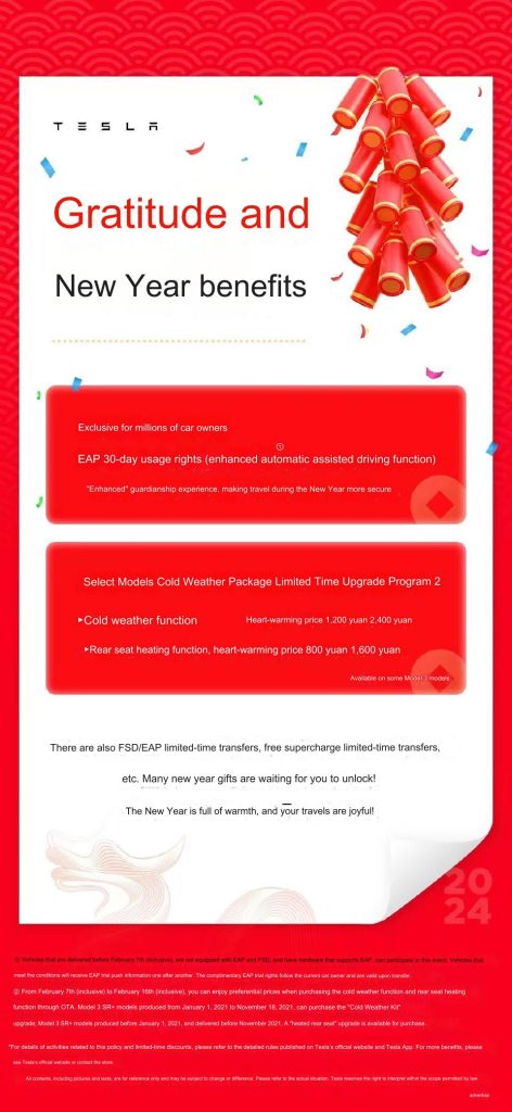 Tesla has launched some promotional offers for owners and buyers in China as part of the Chinese New Year -Year of the Dragon celebrations.