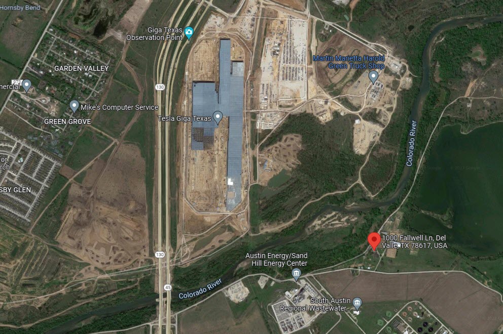 This is just to the southeast of Giga Texas and across the Colorado River.