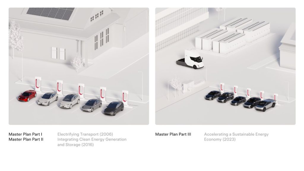 Then came Master Plan Part 3 in 2023, charting a path for a global clean energy transition: scaling battery production, integrating energy generation with storage, and accelerating electric mobility.
