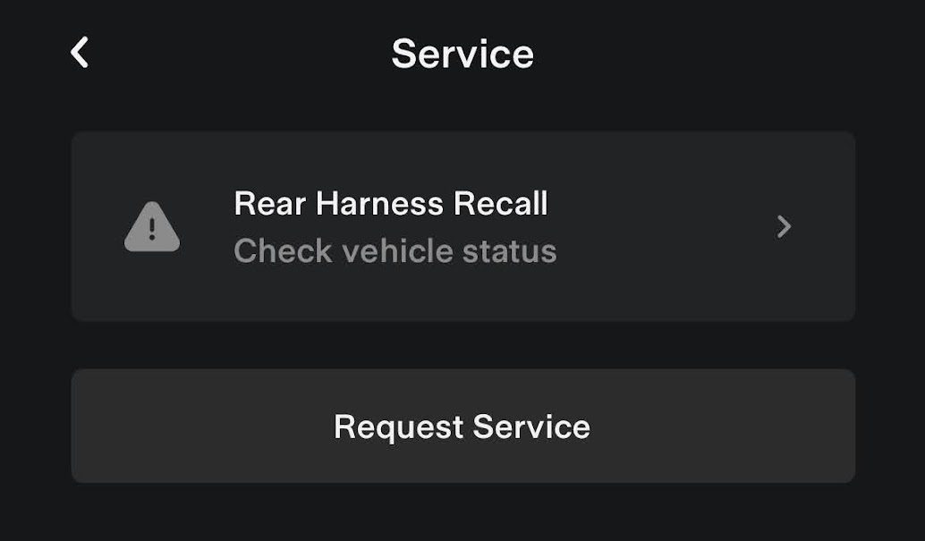 Previously you could check to see if your vehicle had a recall by entering your Vehicle Identification Number (VIN) in the VIN Recall Search tool on Tesla’s website. While the site is still active, you can also now see any active recalls by going to Service menu within your app.
