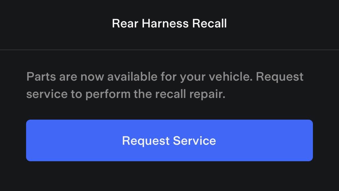 On our mobile app we can see that our 2019 Model 3 is subject to the Rear Harness Recall. This recall is related to the trunk harness and covers all 2017-2020 Model 3s.