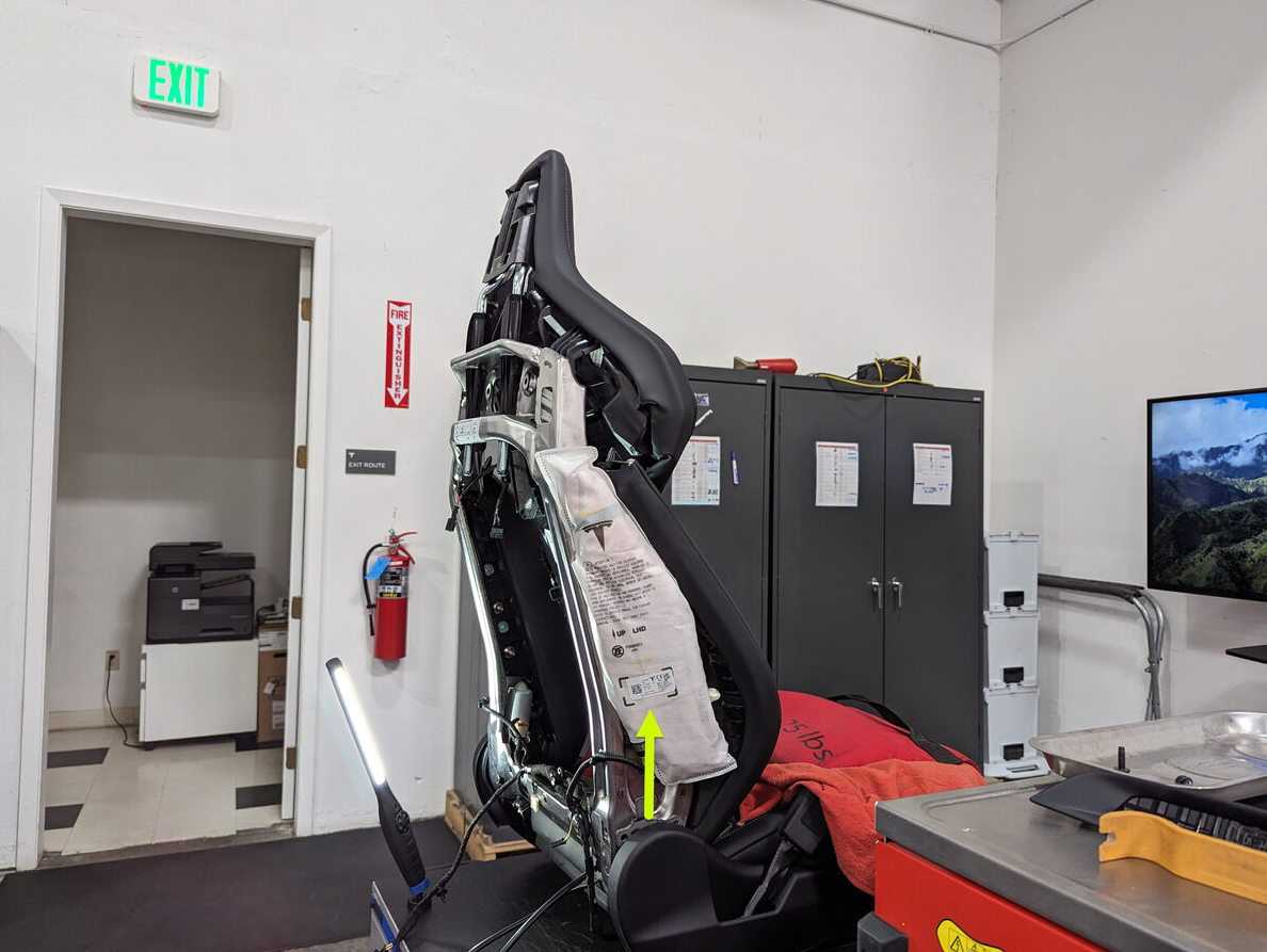 Unfortunately we don’t get to see a full photo of the front of the seat, but we do get to see enough to show us the design is virtually identical to what we see in the Model 3 Ludicrous leak last week.