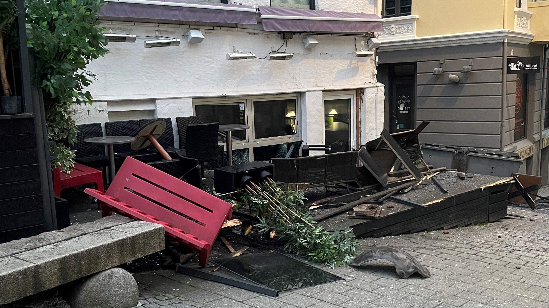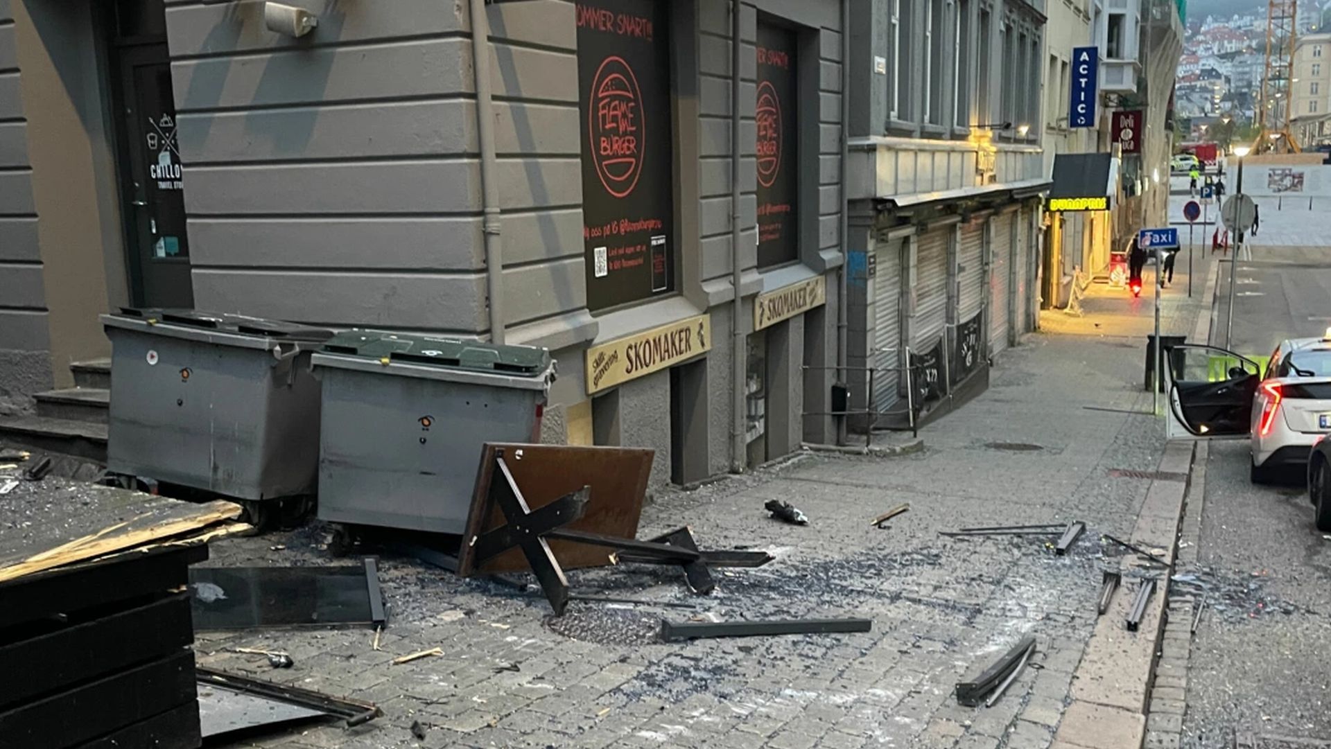 Photos from the scene taken by the Bergen Police show the outcome could have been very different if this incident had happened during the day or evening when the sidewalk is filled with people.