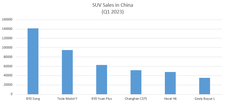 Tesla started off the year in China with some substantial price cuts, and they appear to have stoked strong demand. The Model Y, which saw its prices drop as much as 13% in January, was the country’s best selling SUV in March, and the second best selling SUV overall in the first quarter of 2023.