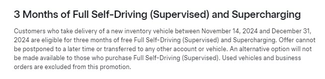 According to the terms of the deal posted on Tesla’s website, the offer is valid on deliveries from existing inventory before the end of the year, December 31, 2024.