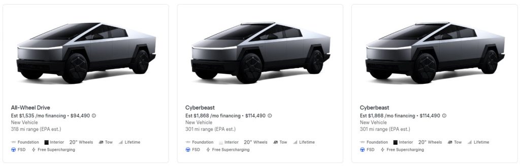 While these models are available in existing inventory in the US, the situation is different in Canada. Tesla is still selling Foundation Series Cybertrucks north of the border as new orders, but none are currently listed in existing inventory.