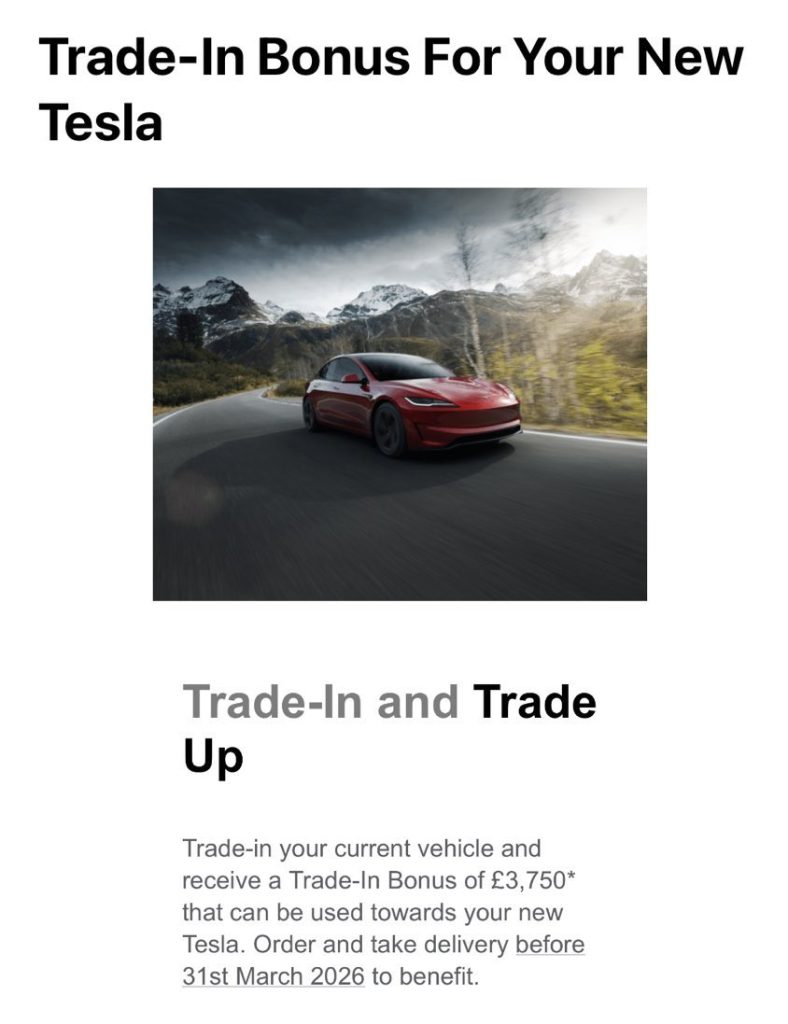 The offer applies across Tesla’s UK lineup and is designed to stimulate demand as we enter the first quarter of 2026. To qualify, customers must both place their order and take delivery of their new vehicle by March 31, 2026, or the end of the first quarter.