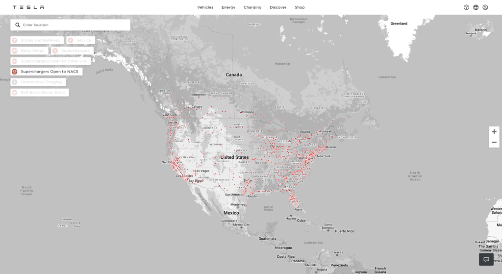 Tesla has also updated their Supercharger map to include a new filter to only show Superchargers open to Ford EV owners, and eventually almost all other brands, showing the expansive network coverage they now, or will soon, have access to.