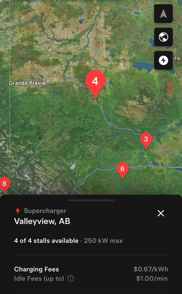 Valleyview is now Canada’s northernmost Supercharger. That title was held for only a few hours by the Supercharger in Whitecourt, and before that by Prince George, BC.