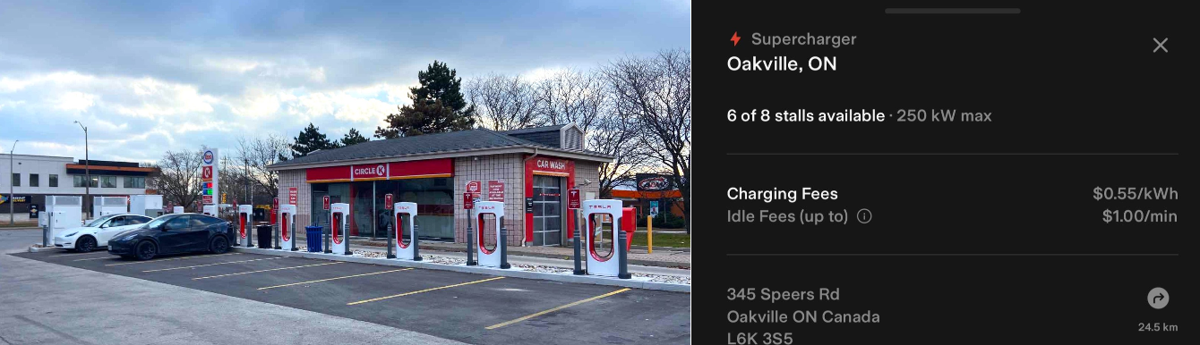Tesla started construction of Oakville’s first Supercharger back in June in the parking lot of the Circle K at 345 Speers Rd. Nearly six months later and the station was finally powered up this week, with Tesla’s official Supercharging account on X announcing the 8 V3 Superchargers are now available.