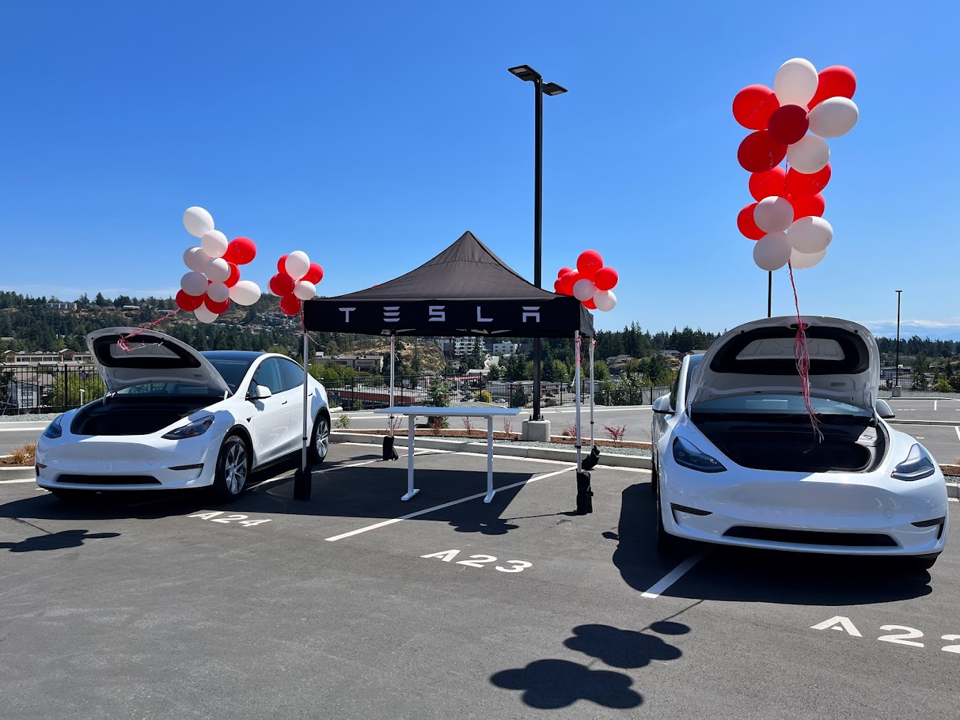 Drive Tesla was invited out to the VIP grand opening party, which was attended by Tesla Canada Director Fereshteh Zeineddin and Western Canada Regional Manager Christopher Bishop, as well as Langford Mayor Scott Goodmanson and past-president of the Victoria Electric Vehicle Association David Grove, all of whom were on hand for the ribbon cutting ceremony to mark the special occasion.