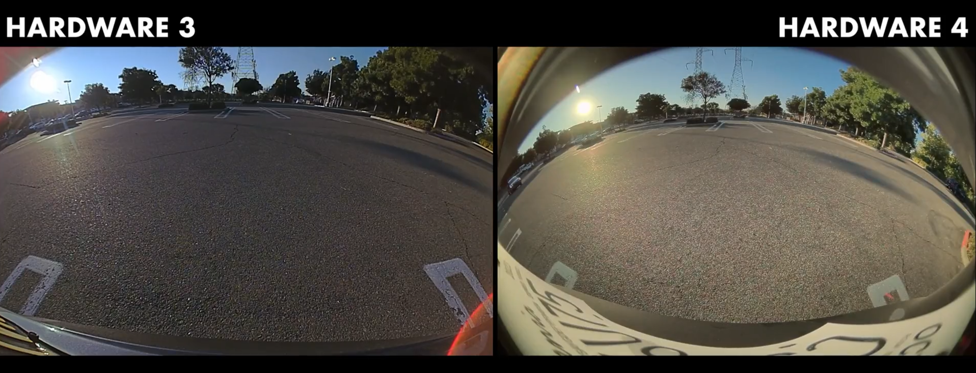 The footage from the HW4 cameras is much crisper, allowing you to easily read license plates and road signs that are blurred and largely indecipherable in HW3. There is also a substantial difference in the rear camera, in which the fish-eye effect is much more pronounced allowing you to see a significantly wider field of view. It should be noted that the rear camera view on the 2018 Model S used in this video does not appear to have as much of a fish-eye effect as the one on either our 2019 Model 3 or 2022 Model Y.