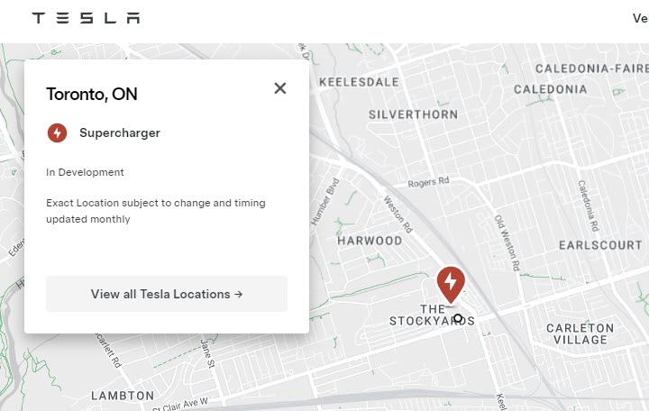 Earlier this year Tesla added a pin for an upcoming Supercharger in Toronto, in the area of the Stock Yards District. Often times these pins are just general locations until Tesla finalizes the location, but as it turns out that is the exact location the company is planning to build a Supercharger.