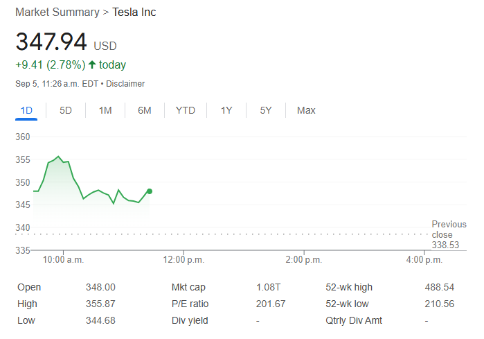 Tesla shares are up nearly 3% in morning trading following the announcement.