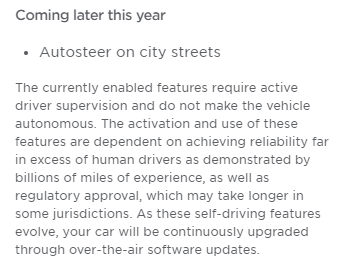 Until last night, the Full Self-Driving Capability section of the Design Studio indicated the final piece of the FSD puzzle, Autosteer on city streets, was “coming later this year.”