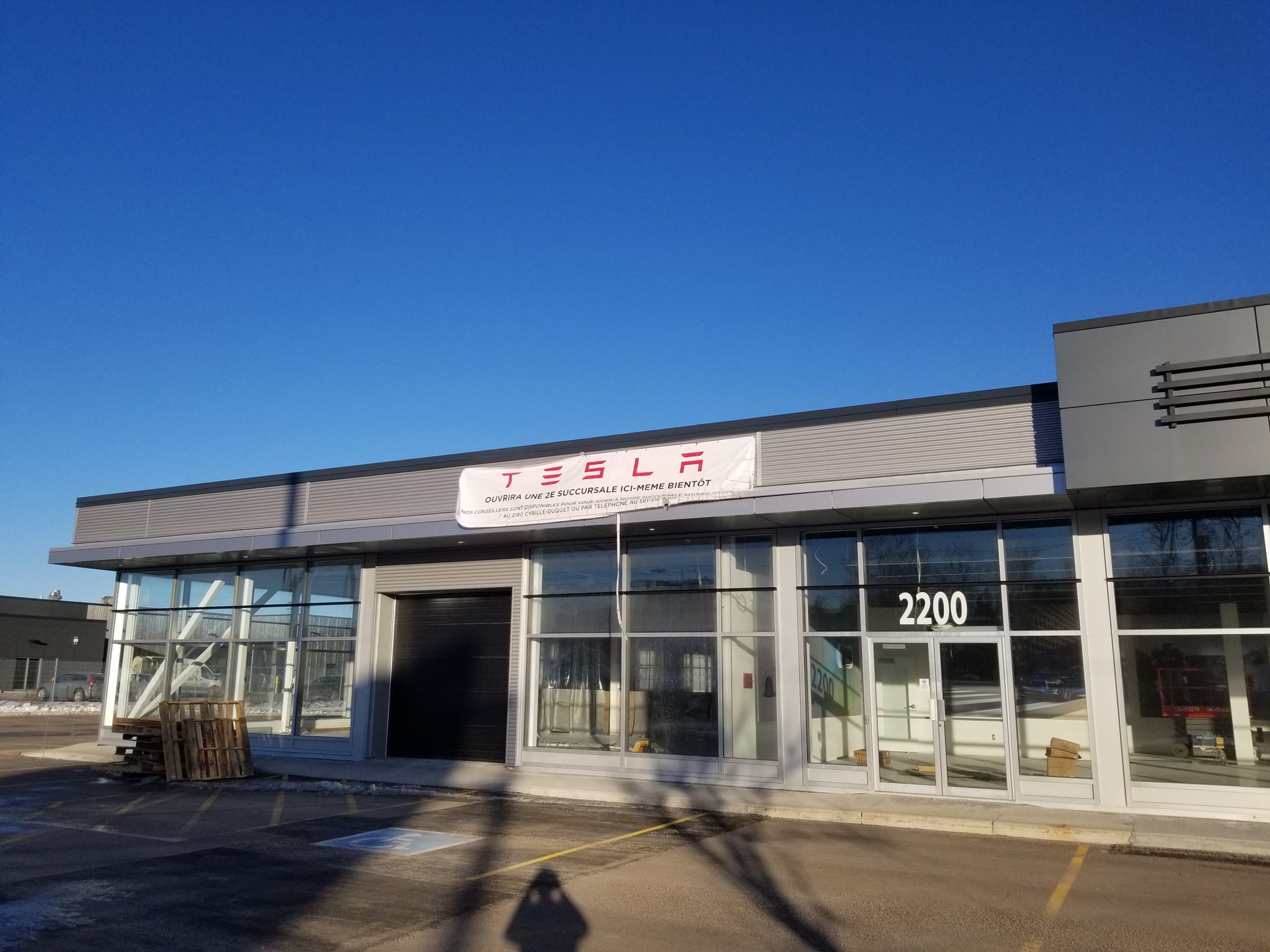 Tesla has already begun renovations on the new building at 2200 Rue Cyrille-Duquet. According to property information records, it is 30,000 square feet in size and has 80 outdoor parking spots.