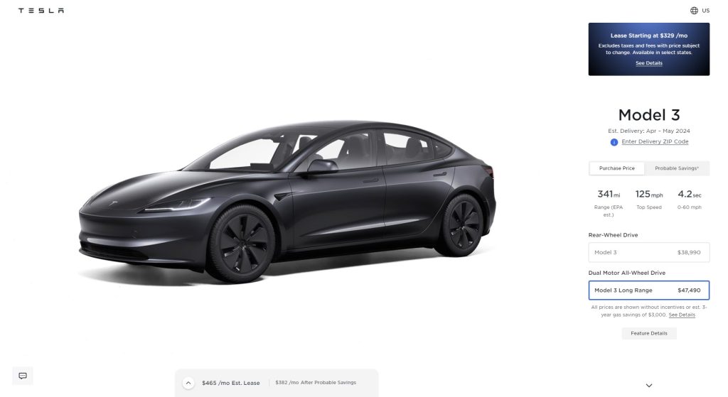 While the price of the Rear-Wheel Drive (RWD) continues to remain the same, Tesla has increased the price of LR again on Tuesday night, this time by $500, to now start at $47,490. (h/t: @SawyerMerritt) There have been no price changes to either of the Model 3 variants in Canada.