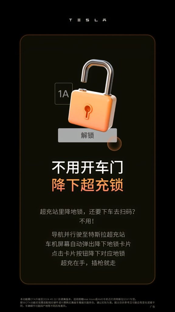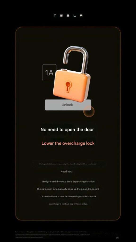 Now Tesla has streamlined the process even more by adding ground lock controls directly to the vehicle’s touchscreen. When navigating to a Supercharger station with ground locks, a dedicated button now appears on the display, allowing drivers to unlock and lower the post without having to open their phone.
