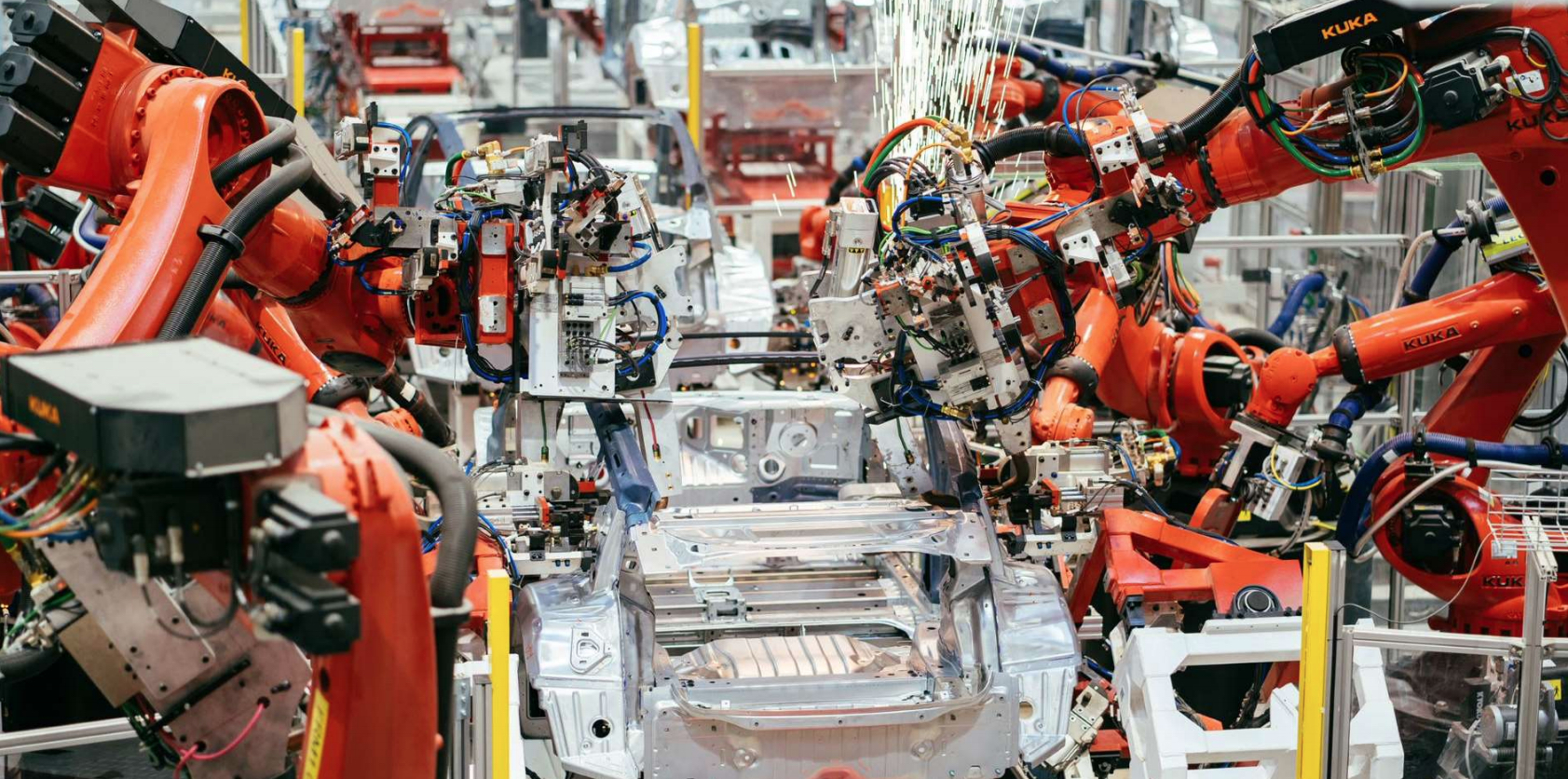 Now Tesla has released some official images from inside the factory, showcasing the stamping press, body shop, paint shop, and general assembly line. They also released a picture of the first made-in-China Model 3, surrounded by the factory workers that made it happen.