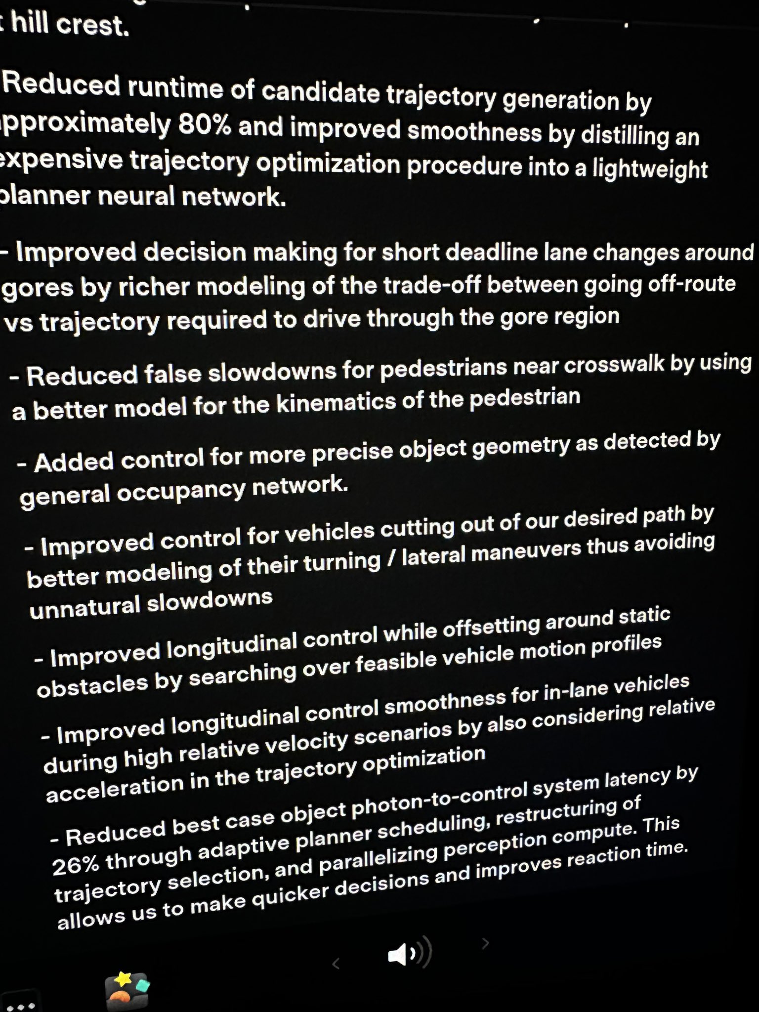 One theme of the update appears to be that it can now react to situations quicker than before with improved photon control and “reduced runtime of candidate trajectory generation by approximately 80%.”