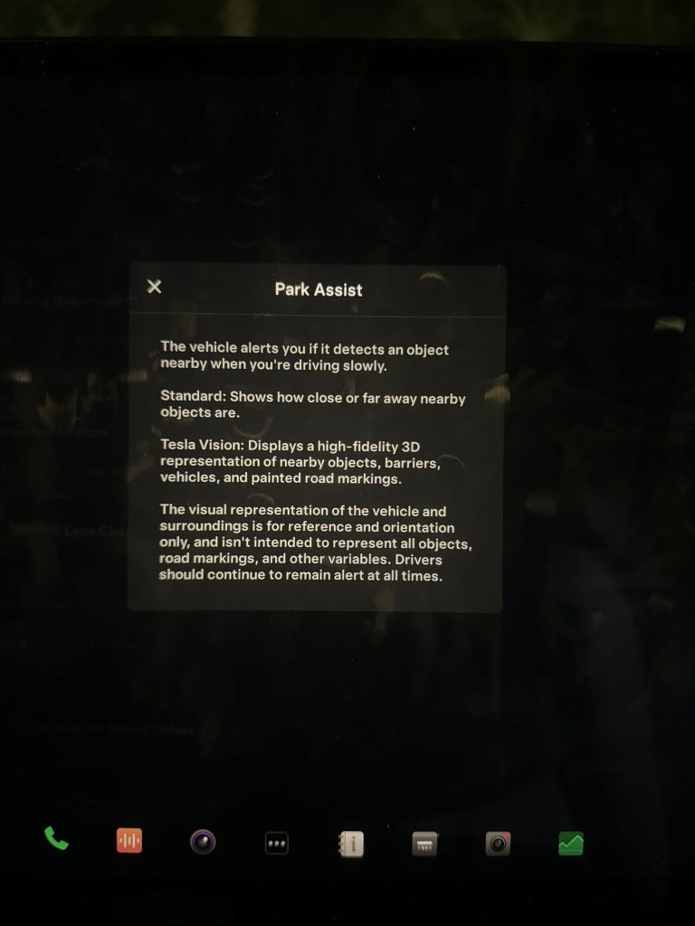 According to photos shared on social media, owners of these cars can select between the “Standard” version of Autopark, and the new “Tesla Vision” Park Assist. The Standard version will simply utilize the USS to display how far away nearby objects are like it always has, while the Vision option will provide the high fidelity 3D reconstruction.