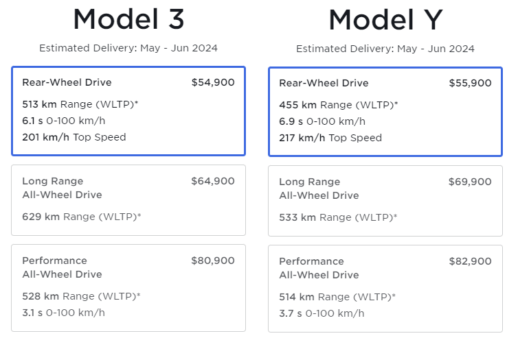 Similarly, the price for the Model 3 RWD has been dropped by AUD$4,000 (C$3,630), making its new starting price AUD$54,900 (C$49,840).