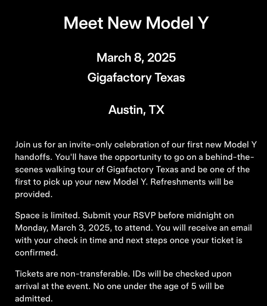 While the first deliveries are now underway in the U.S., the company is still planning a special launch event for the new Model Y. While exact details about the event are unclear, some customers have received invitations to attend a handoff event at either Giga Texas or the Fremont factory.